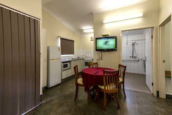 These 2 Bedroom Villas are beautifully appointed and offer a King Bed in the main bedroom with 2 King Singles in the second bedroom. Villa 3 has a King Bed in each bedroom, suitable for 2 couples. All linen is included. Villa 1 has a large handicapped bath room. All Villas have a fully equipped kitchen with stove, large fridge/freezer, lounge, dining table, 3 split system air-conditioners, large flat screen TV.